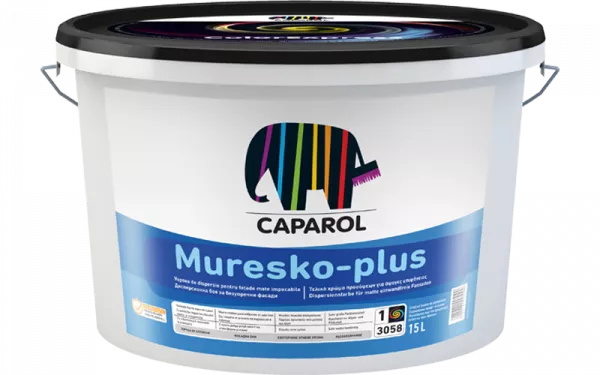 Vopsea de fațadă universală, întărită cu siloxan, cu înaltă capacitate de difuzie, hidrofobă. Destinată realizării de vopsitorii exterioare pe suprafețe netede sau texturate. Este o vopsea de fațadă întărită cu siloxan, cu o protecție optimă la umiditate dar în același timp cu permeabilitate la vaporii de apă. Aplicată pe tencuieli rugoase, vopseaua Muresko-plus păstrează textura sau egalizează textura suprafeței, în funcție de gradul de diluție. De asemenea, recomandată pentru renovarea zugrăvelilor vechi dar portante de pe elemente prefabricate din BCA.
